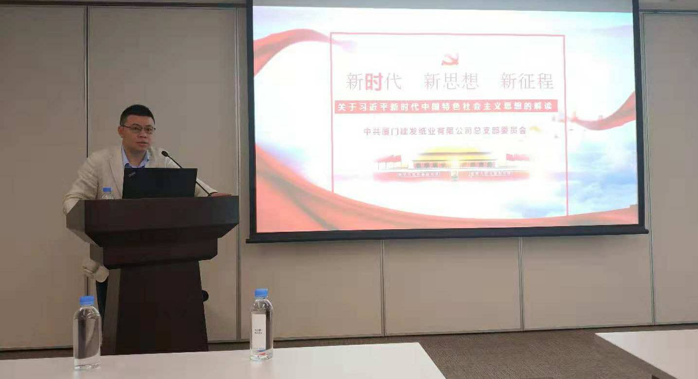 2018年10月23日,必一运动·(B体育-Bsports)官方网站党总支书记程东方同志在建发大厦23楼4号会议室以《新时代、新思想、新征程——关于习近平新时代中国特色社会主义思想的解读》为主题给纸业公司的党员们做了一次专题党课分享。